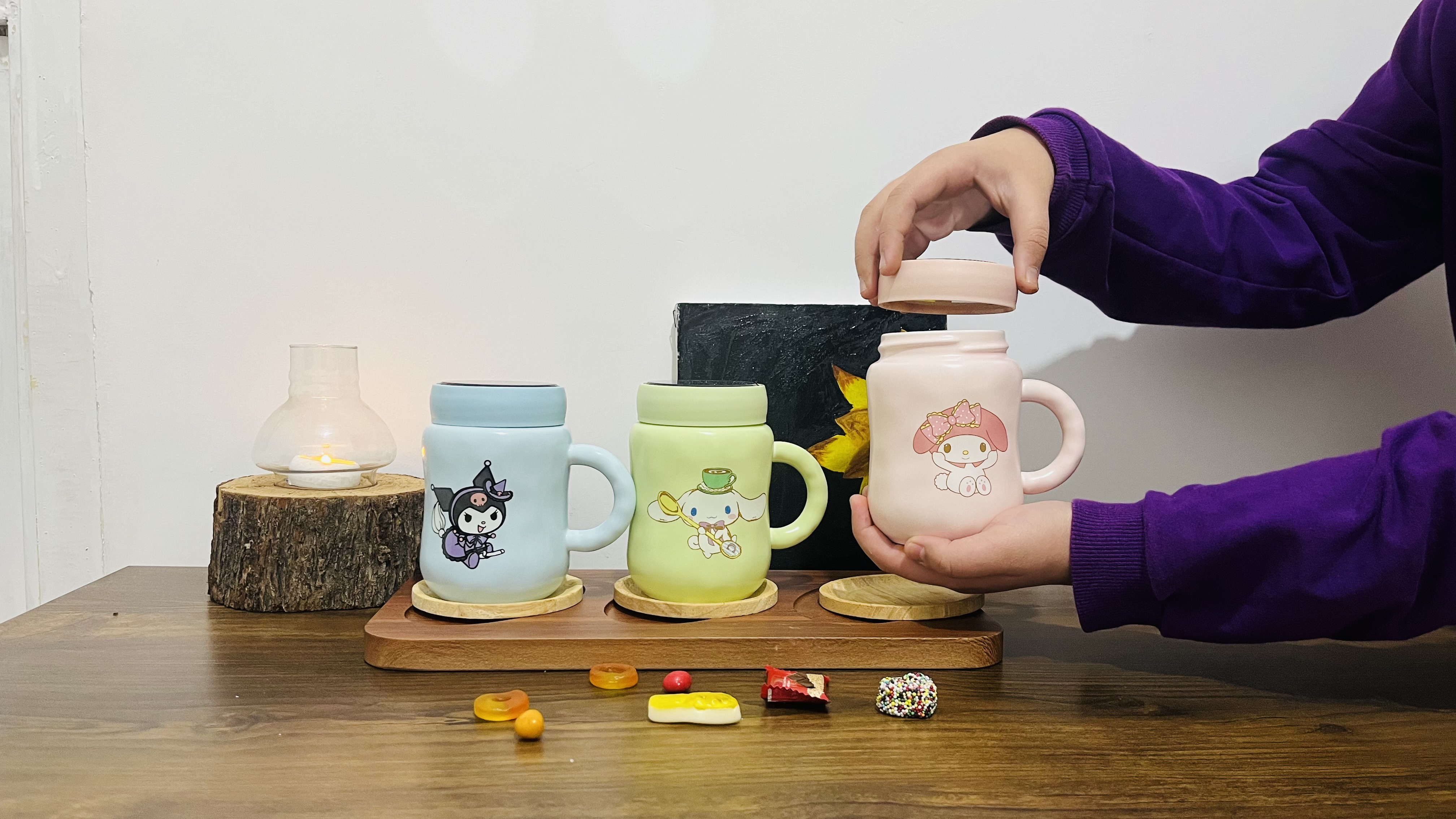 ماگ سرامیکی درب آینه ای طرح انیمه ،درب ماگ بصورت پیچی قفل میشود دارای واشر میباشد و نشتی ندارد